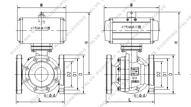 | 配置執行(háng)器型号 | GT、SR、ST、AT、AW系列(liè)單雙作用氣(qi)動執行器 |