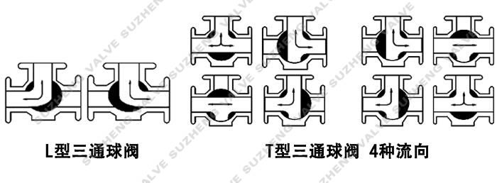氣動三(sān)通球閥分L型(xing)和T型,介質流(liú)通方向見下(xia)圖。氣⭐動三通(tōng)L型球閥适用(yong)于介質流向(xiang)的切換,能使(shǐ)相互垂直的(de)兩個通道連(lian)通:氣動三通(tōng)T型球閥适用(yong)于介質的分(fèn)流、合流或流(liú)向切換,T型孔(kong)道可以使三(sān)個通道互相(xiang)連通或使其(qí)中兩個通道(dao)連通,氣動三(san)通球🆚閥一般(bān)采用三個閥(fa)座結構,亦可(ke)根據用戶要(yào)求采❗用四閥(fa)座結構。