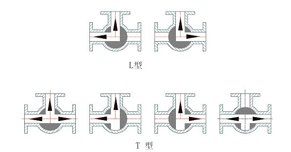氣動(dong)三通球閥分L型和T型,介質(zhi)流通方向見下圖(tu)。氣動三通L型(xíng)球閥适用于介質(zhì)流向的切換,能使(shi)相互垂直的兩個(ge)💔通道連通:氣動三(sān)通T型球閥适(shi)用于介質的分流(liu)、合流或流向切換(huàn),T型孔道可以(yǐ)使三個通道互相(xiàng)連通或使其中兩(liǎng)個通‼️道連通,氣動(dong)三通球閥一般采(cǎi)用三個閥座結構(gou)🔅,亦可根據用戶要(yào)求采用🏃🏻♂️四閥座結(jié)構。