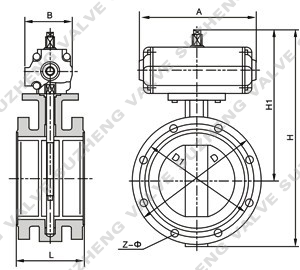L 法蘭(lan) | L1 對夾 | H | H1 | 1.0MPa | 1.6MPa | ||||||